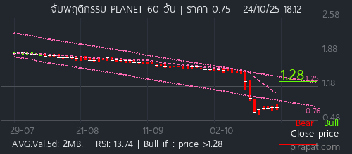 MACD ของวันนี้คือ -0.24078 กราฟ MACD วันนี้ตัดลงต่ำกว่า Signal แสดงถึงการอ่อนตัวของราคา ราคาอาจย่อลงได้ และเนื่องจากเส้น MACD ยังต่ำกว่าศูนย์ ราคาอาจยังอึมครึมอยู่แบบนี้อีกระยะนึง ควรพิจารณาปัจจัยอื่นประกอบด้วย คำเตือน กราฟ MACD ไม่สามารถบอกจุดซื้อขุดขายได้อย่างถูกต้องหากราคาวิ่งในลักษณะ Sideway