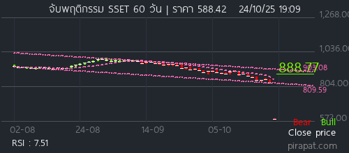 MACD ของวันนี้คือ -45.70015 กราฟ MACD วันนี้ตัดลงต่ำกว่า Signal แสดงถึงการอ่อนตัวของราคา ราคาอาจย่อลงได้ และเนื่องจากเส้น MACD ยังต่ำกว่าศูนย์ ราคาอาจยังอึมครึมอยู่แบบนี้อีกระยะนึง ควรพิจารณาปัจจัยอื่นประกอบด้วย คำเตือน กราฟ MACD ไม่สามารถบอกจุดซื้อขุดขายได้อย่างถูกต้องหากราคาวิ่งในลักษณะ Sideway